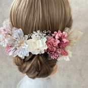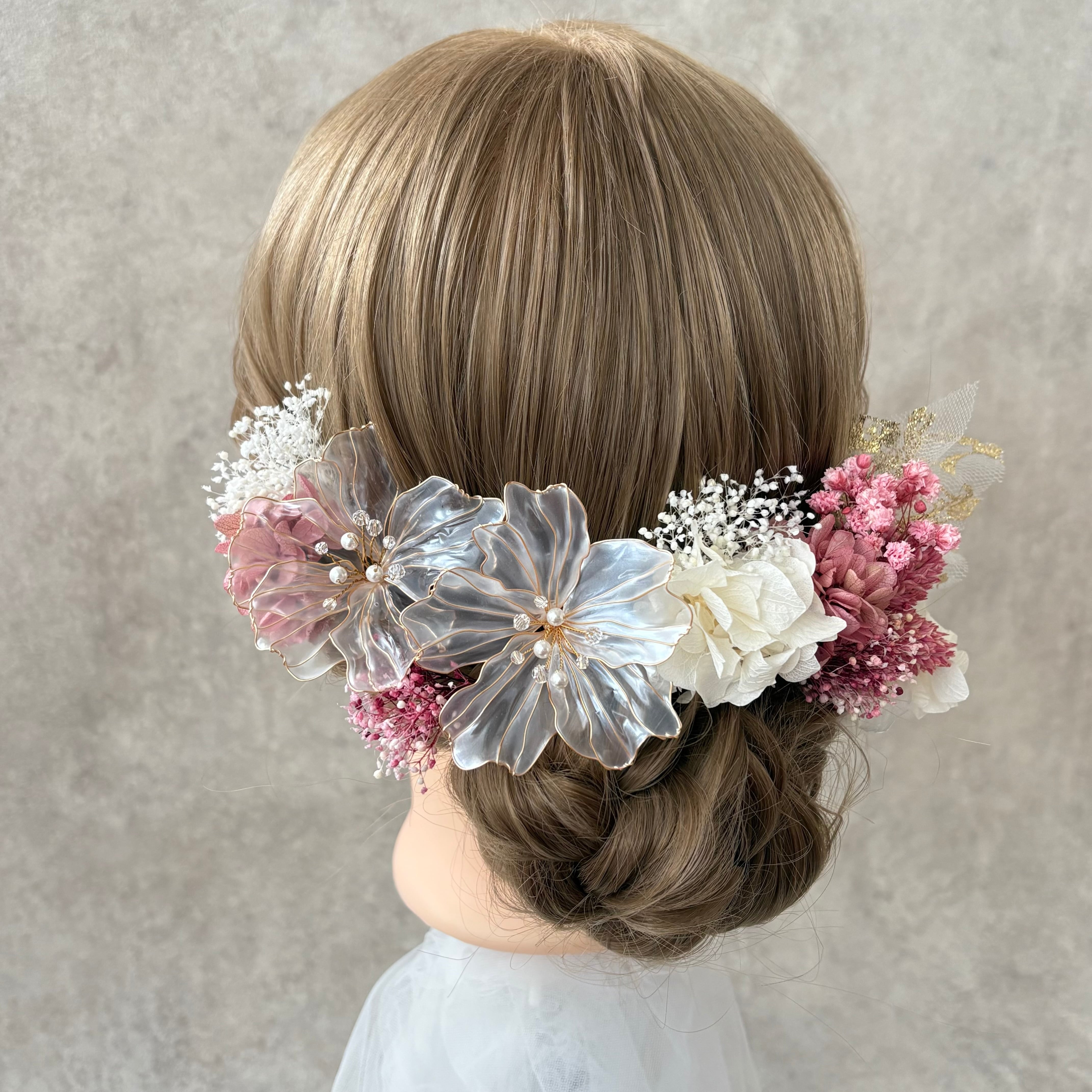 天使の羽がそっと舞い降りたような、透明感溢れる、ガラスのように繊細な髪飾りは、花嫁様の上品な美しさを引き立たせます。