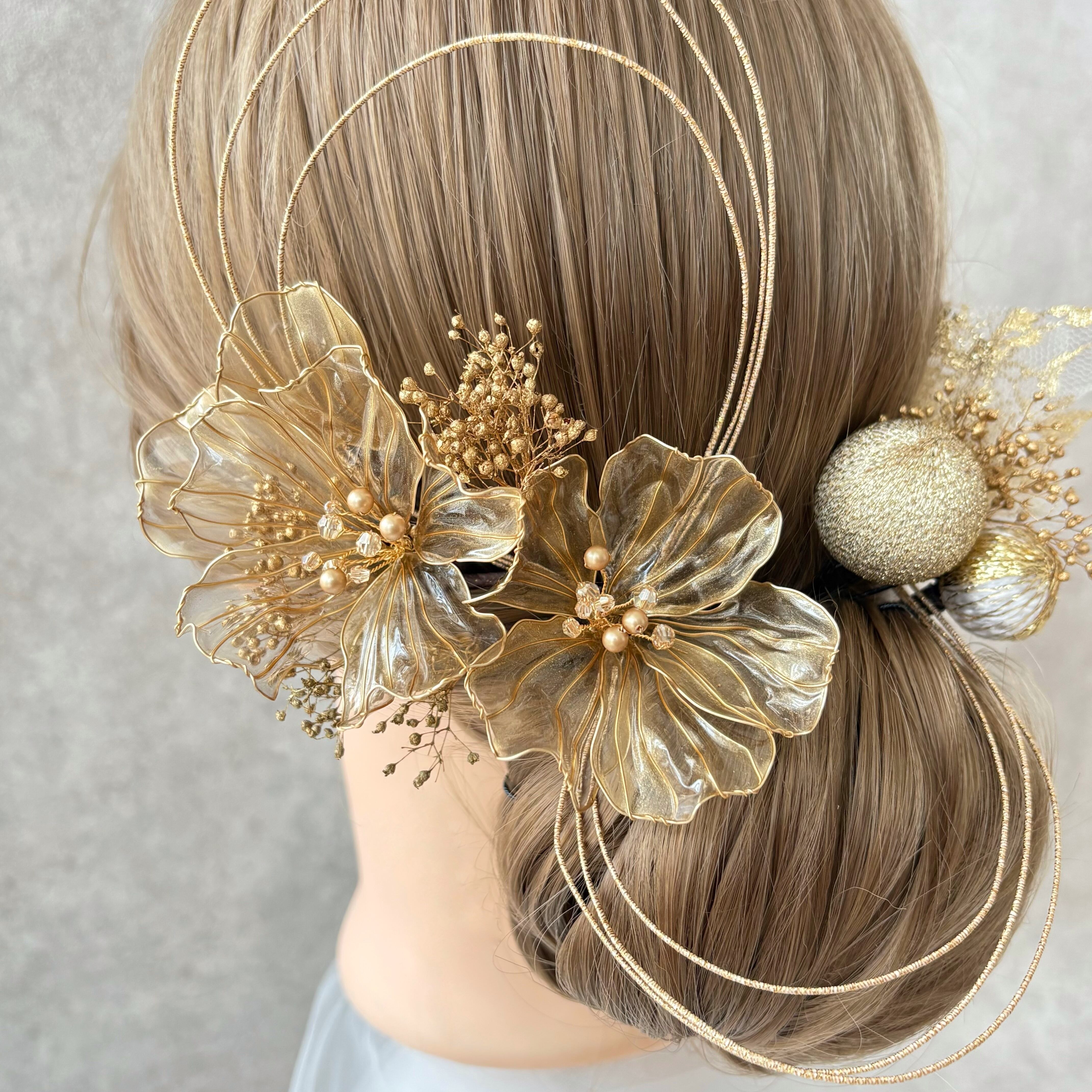 天使の羽がそっと舞い降りたような、透明感溢れる、ガラスのように繊細な髪飾りは、花嫁様の上品な美しさを引き立たせます。