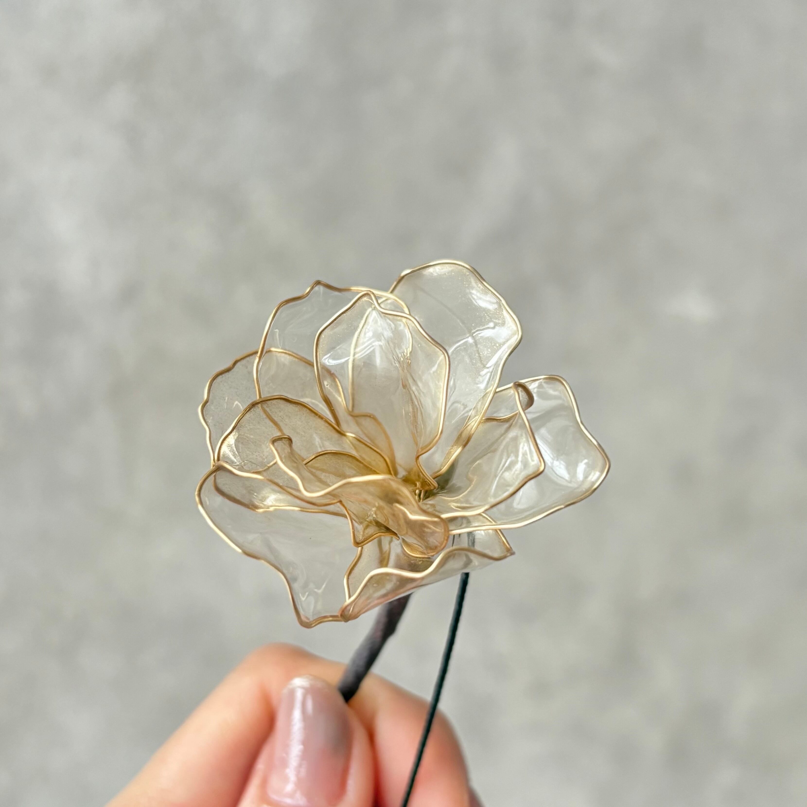 菊(マム)をイメージし、花嫁様の晴れの日を彩る特別な一輪への仕立てました。
